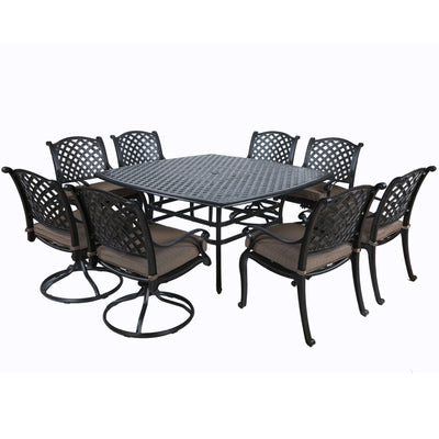 Square 8 Person 64" Long Aluminum Dining Set With Cushions
