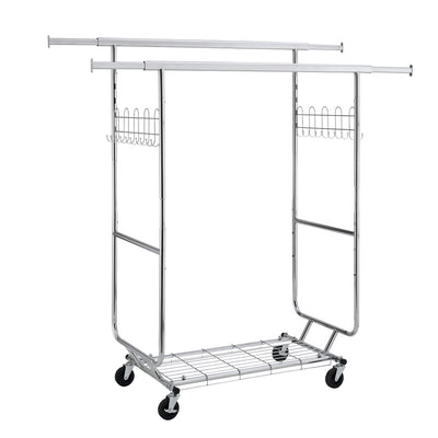 Heavy Duty Double Clothing Garment Rack With Shelves - Silver