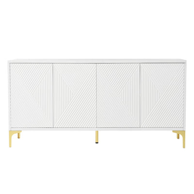 Modern Wood Sideboard Cabinet With Carved Door Panels, Adjustable Shelves, And Sturdy Metal Legs