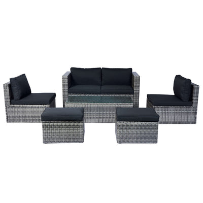 5 Pieces Rattan Sectional Outdoor Furniture Cushioned U Sof Set With 2 Pillow - Gray / Black