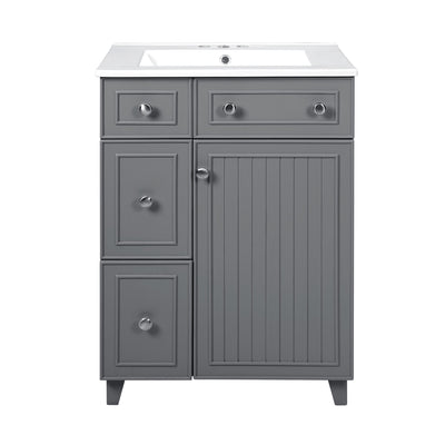 Transitional Style Bathroom Vanity Cabinet With Ceramic Sink
