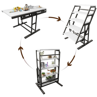 Solid Mahogany Wood Multifunction Convertible Dining Table, Free Switch Space Saving Table Shelf For Home And Studio