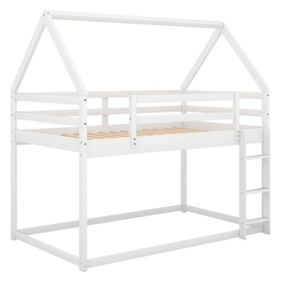 Twin Over Twin Low Bunk Bed, House Bed With Ladder - White