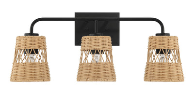 Moonlit - 3 Lights Wall Sconce With Shade, Bathroom Lighting Fixtures Over Mirror - Black / Rattan