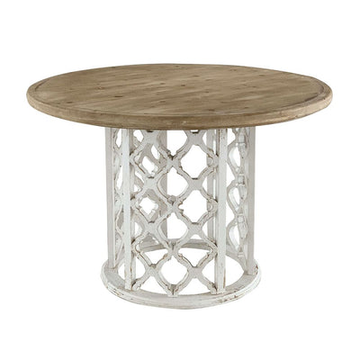 Round Wooden Dining Table With Ornate Cut Out Base - Brown / Antique White