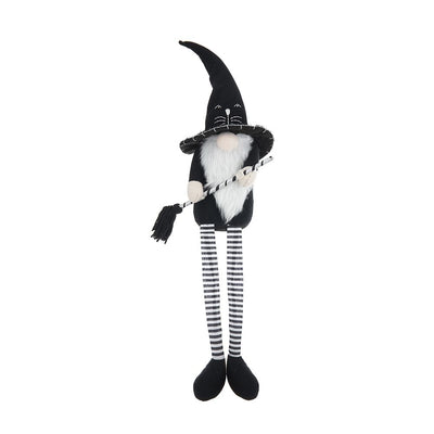 Sitting Gnome With Broomstick & Soft Legs, For Halloween Decor - Black White