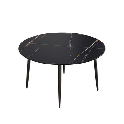 Modern Artificial Stone Round Dining Table With Metal Legs, Can Accommodate 6 People - Black
