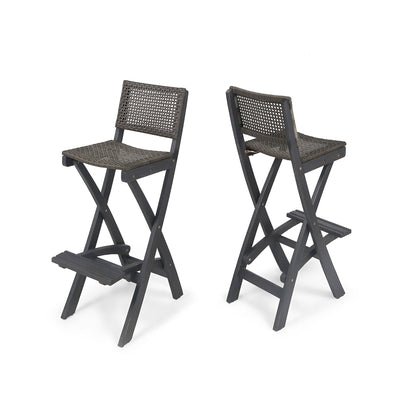 Outdoor Folding Acacia Wood Barstools With Rattan Backrest And Seat