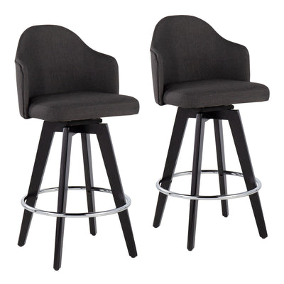 Toriano - Contemporary, Fixed Height Counter Stool With Swivel And Round Footrest (Set of 2)