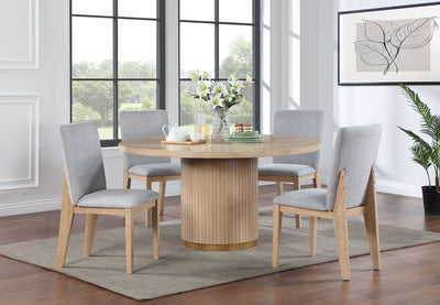 Delphine - Round Dining Table Set With Chairs (Set of 5) - Oak Finish And Gray