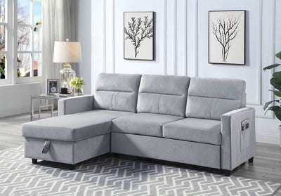 Ruby - Velvet Reversible Sleeper Sectional Sofa With Storage Chaise And Side Pocket - Light Gray