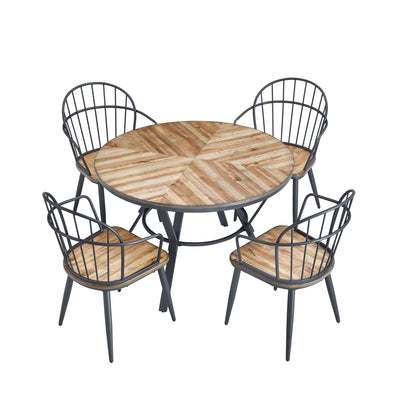 5 Piece Industrial Style Indoor Upholstered Dining Set With Metal Legs - Brown