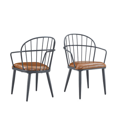 Industrial Inspired Upholstered Dining Chair Set With Metal Legs (Set of 2) - Brown