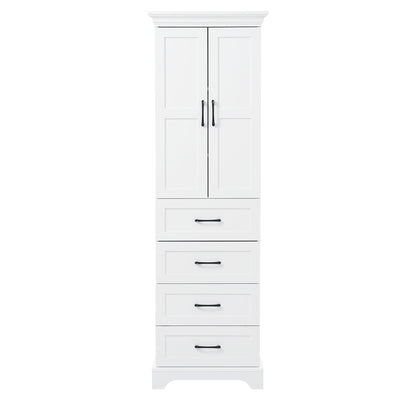 Freestanding Bathroom Vanity Tall With Damping Hinge Doors, Adjustable Shelves - White