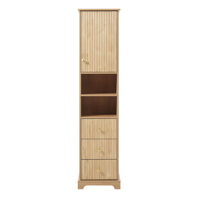 Tall Bathroom Cabinet With 1 Door, 3 Drawers, Open Storage - Wood