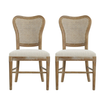 Classic Retro Dining Chair (Set of 2) With Rattan Backrest - Dark Brown / Beige