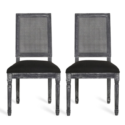 French Country Dining Chair With Rectangular Cane Backrest And Smooth Upholstered Seating