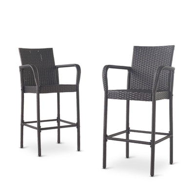 Outdoor Wicker Barstools With Rattan And Iron Frame