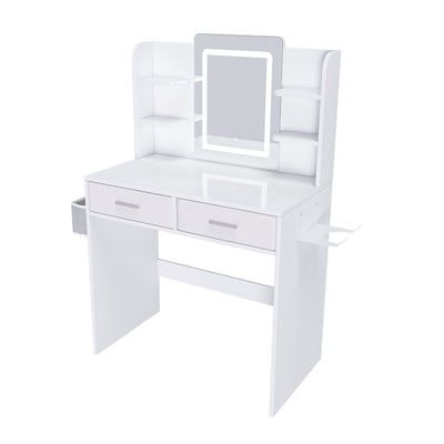 Elegant LED Mirror Vanity Dressing Table With Adjustable Lights, Drawers & Storage - White