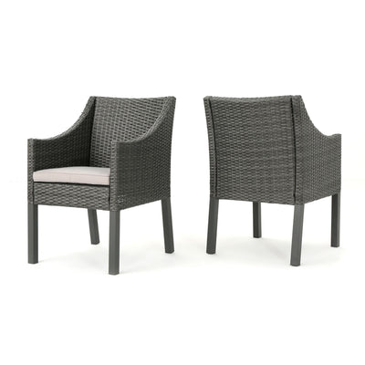 Outdoor Rattan Dining Chair With Straight Legs And Sloped Arms (Sey of 2)