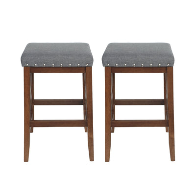 Upholstered Bar Stool With Nailhead Trim And X Frame Design (Set of 2) - Charcoal