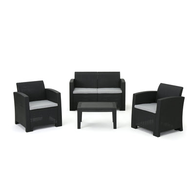 Zephyra - Outdoor 4 Piece Faux Wicker Rattan Chat Set With Water Resistant Cushions - Gray