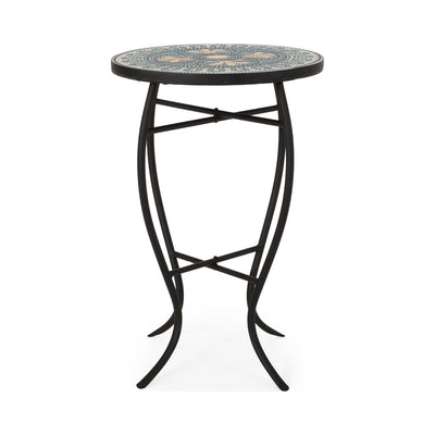 Outdoor Side Table With Tile Mosaic Table Top - Black