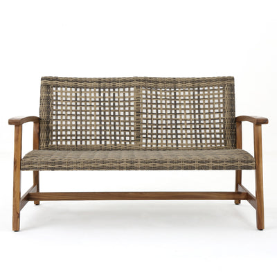 Outdoor Rattan Loveseat With Wooden Legs - Brown