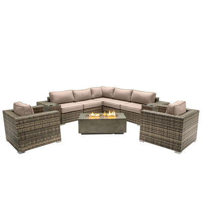 Rattan Wicker Patio Set With Cushions And Concrete Fire Pit