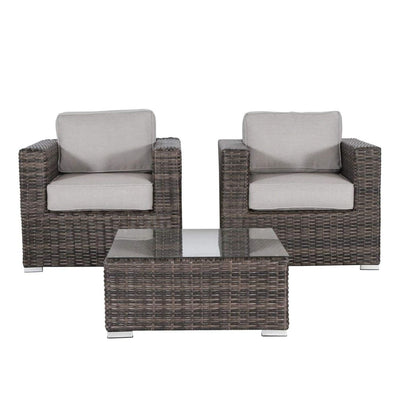 Modern Style Hdpe Wicker Seating Group With Cushions For 3 People In Brown Finish