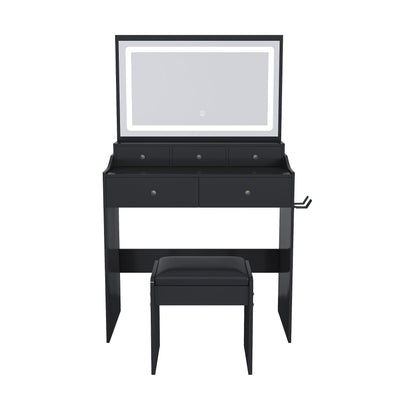 Modern Makeup Vanity Set With Power Outlet, Hair Dryer Holder, And Adjustable Lighting