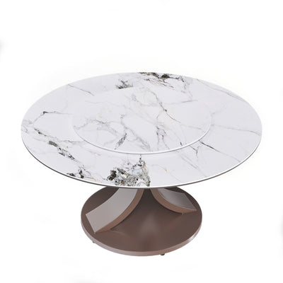 Round Dining Table With Carbon Steel Base And Lazy Susan Industrial Style - Black / White