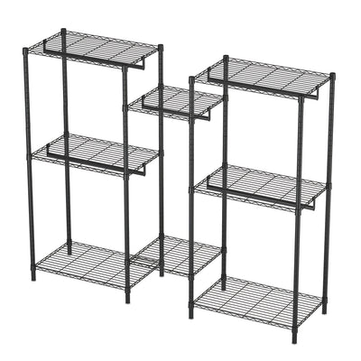 Heavy Duty Garment Rack With 8 Adjustable Wire Shelves And 5 Clothes Rails, Freestanding Closet Organizer Metal - Black