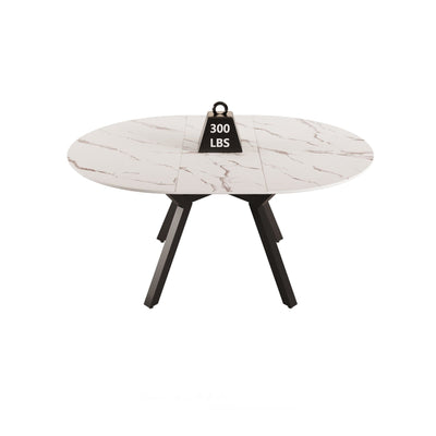 Modern Extendable White Circular Dining Table with MDF Top and Metal Legs for 4-6 Persons