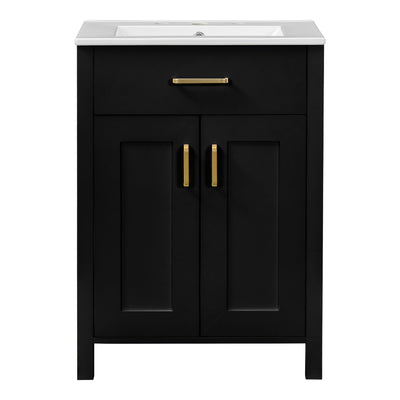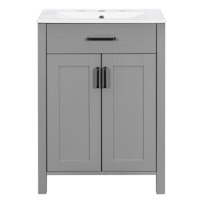 Bathroom Vanity With Ceramic Sink, Soft Close Doors, Flip Drawer, Double Layer Door Shelves
