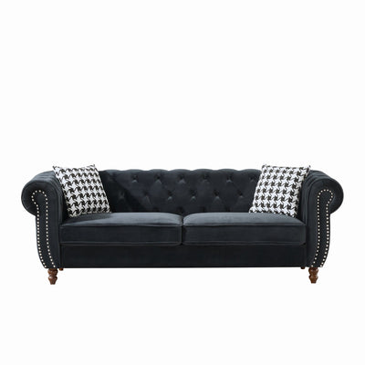 Chesterfield Velvet Upholstery Fabric Sofa With Roll Armrest & Nailhead
