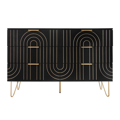 Luxury Simple Chair (Set of 4) Linen Cotton High Resilience Dining Chair With Metal en Legs - Black / Gold