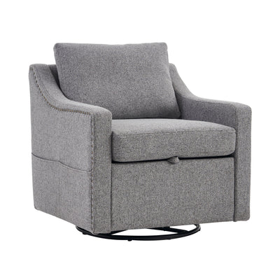 Linen Fabric 360° Swivel Accent Chair With Upholstered Back Pillow And Rivet Armrest