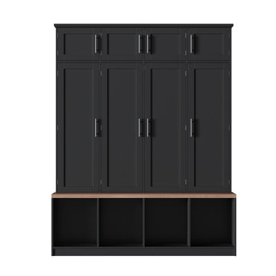 Farmhouse Hall Tree With 4 Hidden Hanging Hooks And 8 Doors