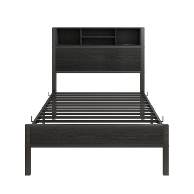 Modern Metal Platform Bed Frame With Storage Headboard And Charging Station