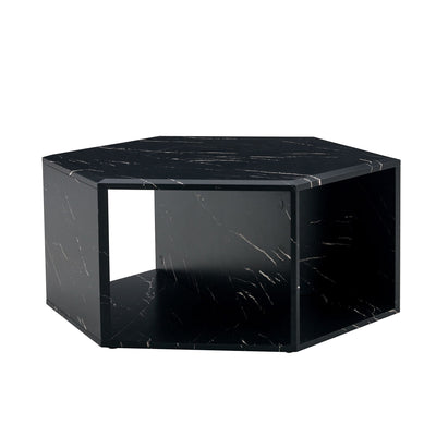 Hexagonal Coffee Table With Characteristic Pattern Stickers And Multi-Hole Design For Extra Storage