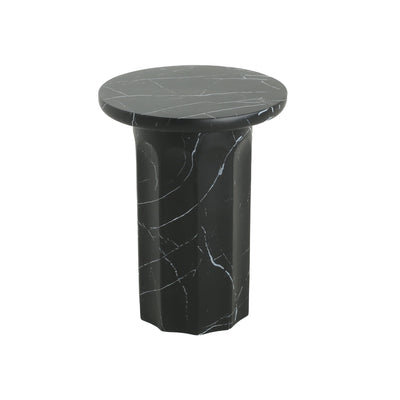 Outdoor Lightweight Concrete BMarble Effect Side Table, Living Room End Table - Black / Marble