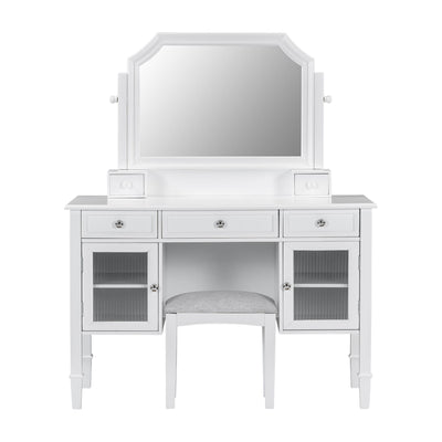 Elegant Makeup Vanity Desk With Adjustable Mirror And Storage And Construction - White