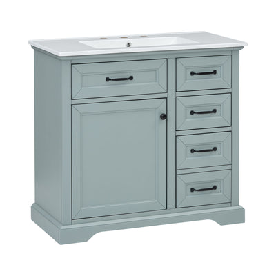 37" Bathroom Vanity, Multi Functional Cabinet With Doors And Drawers, Frame, Single Faucet Hole - White