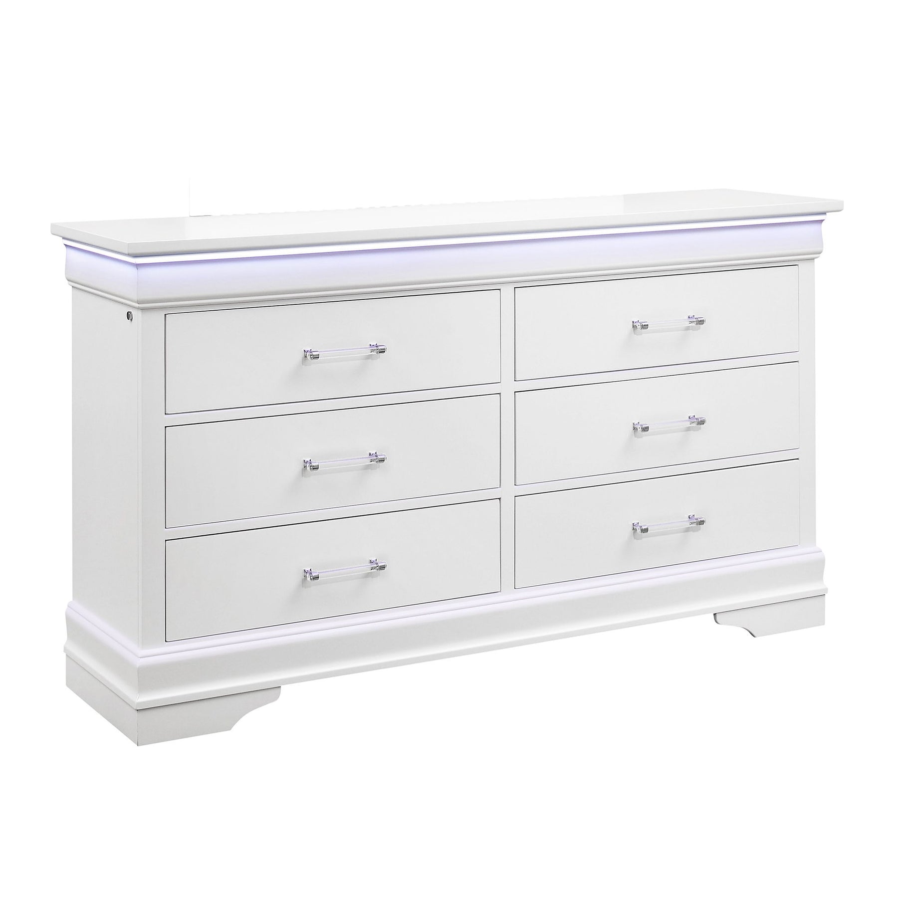 Charlston - Queen Bedroom 5 Piece Set With Sleigh Bed And LED Lighting - White