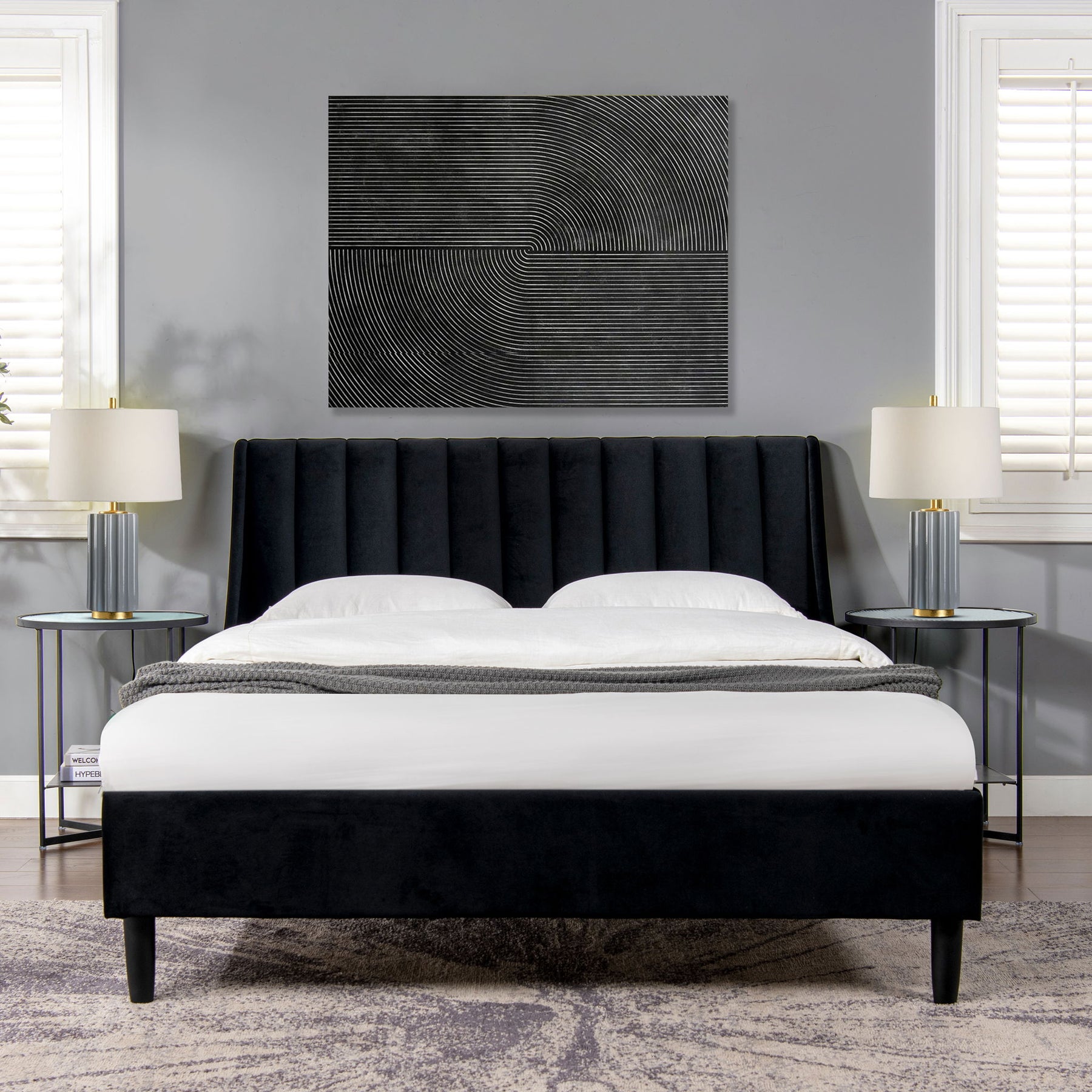Aspen - Queen Vertical Tufted Headboard Platform Bed Set - Anthracite Black