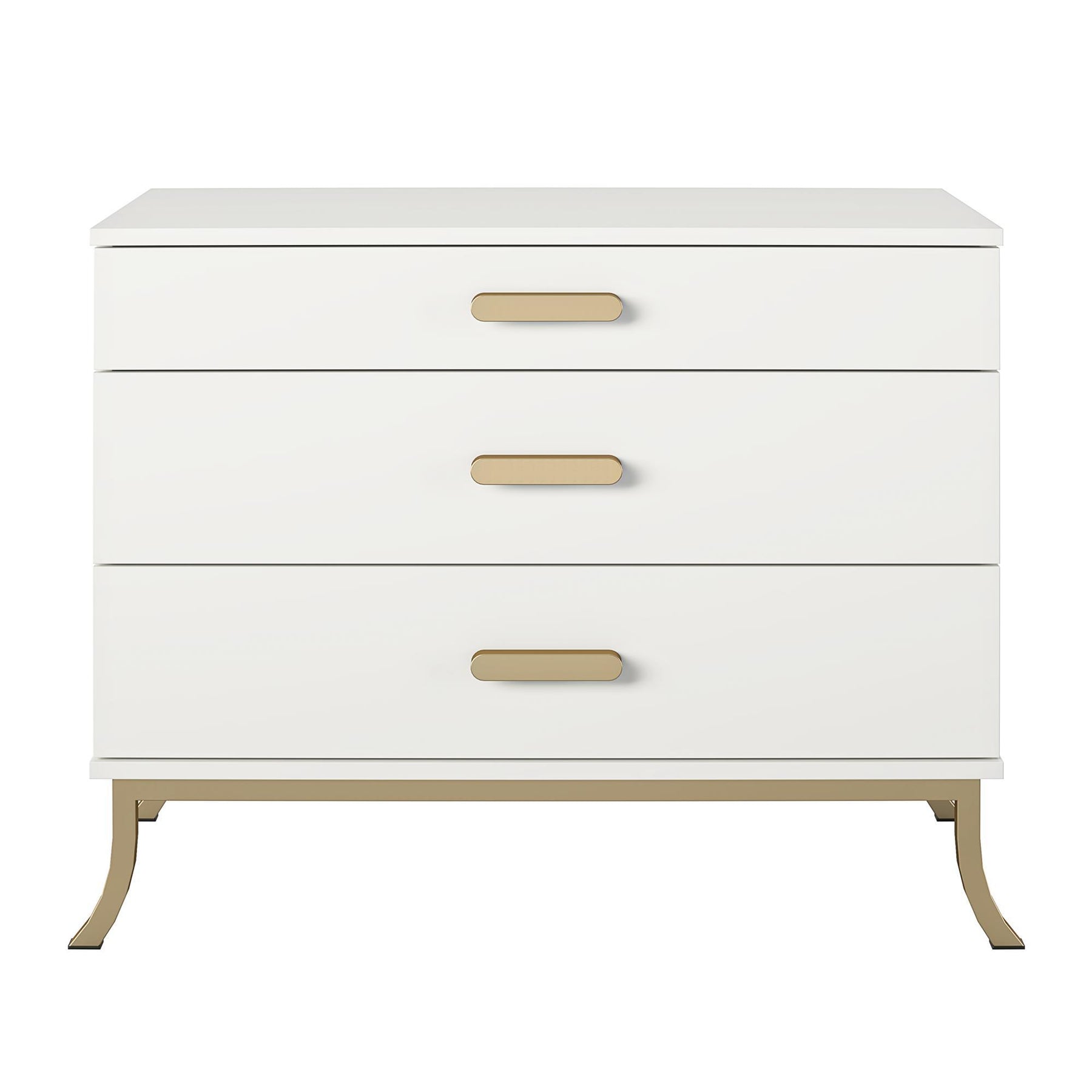 - Modern Glam Details: Sleek off-white finish with curved gold metal legs creates a minimalist yet sophisticated look