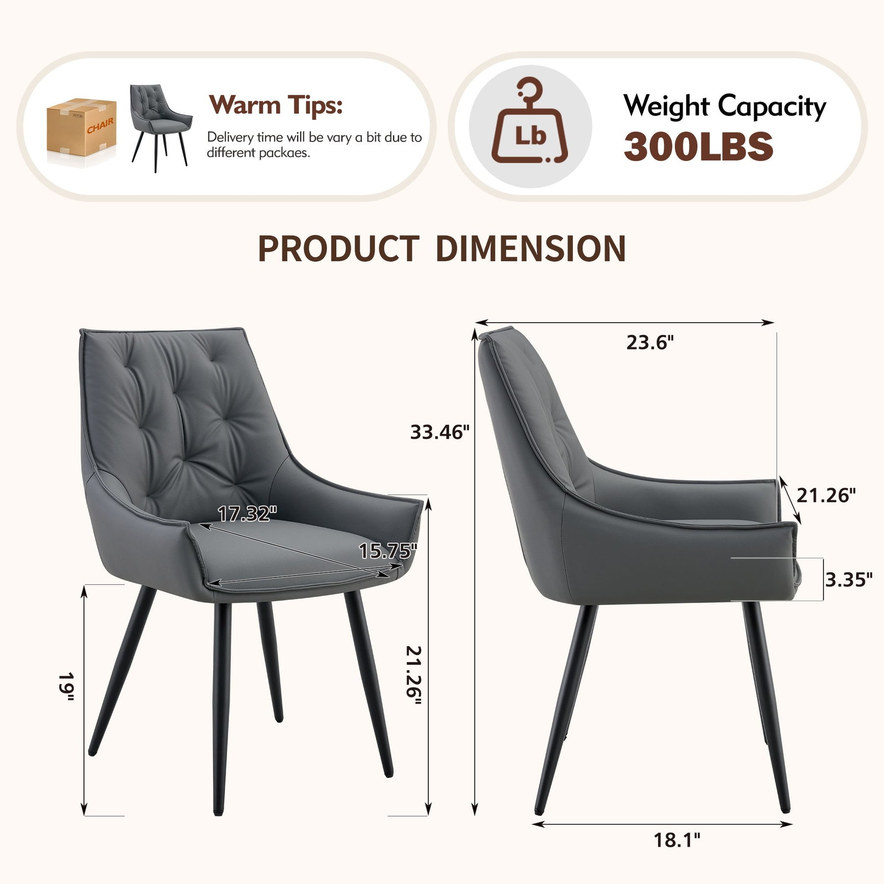 - [Premium PU Leather Upholstery] Crafted with high-quality PU leather, this dining chair features a smooth texture and clear natural grain. The touch is soft yet firm, offering a refined and elegant look that elevates any dining or living space.