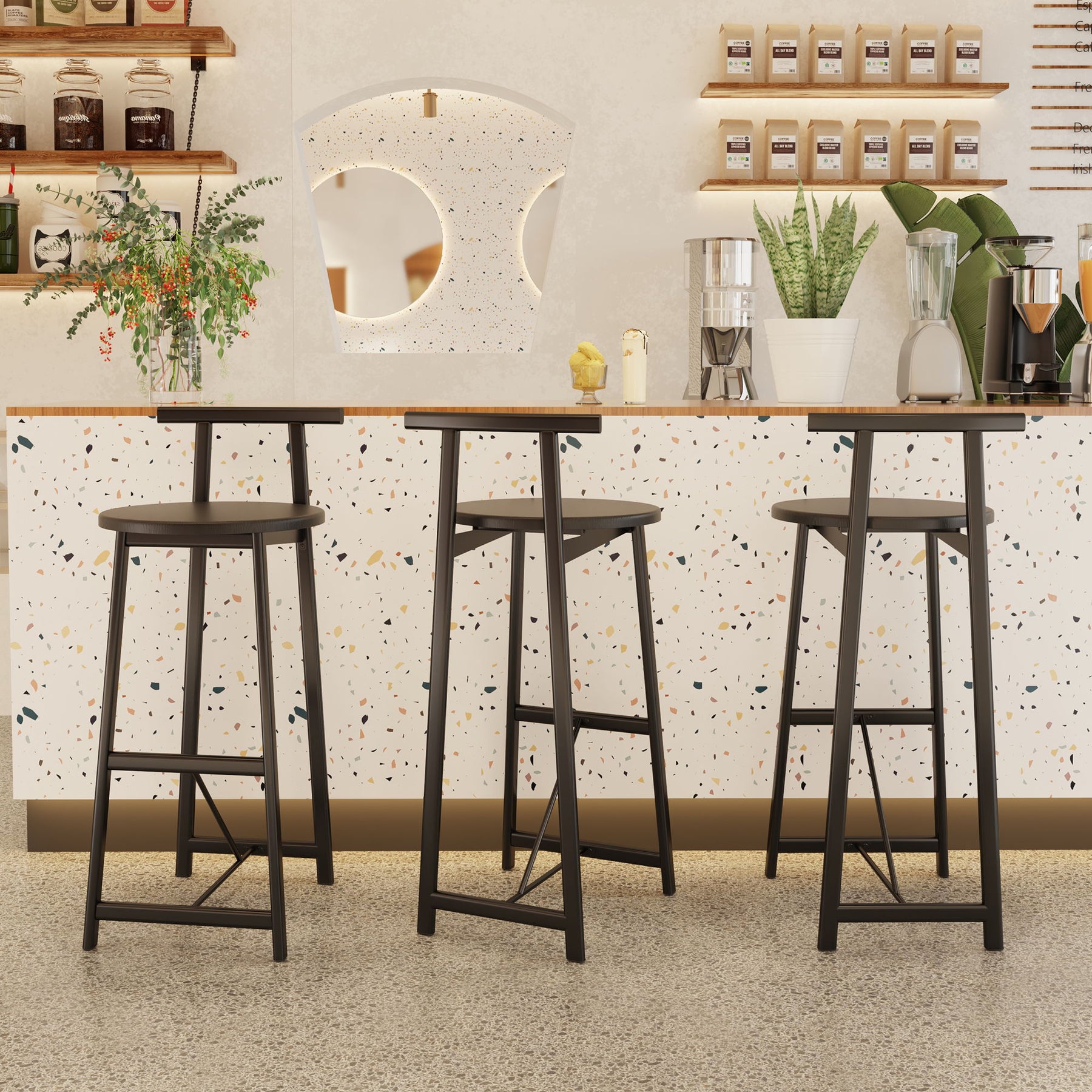 Modern Kitchen Bar Stools (Set of 3) With Footrest - Black