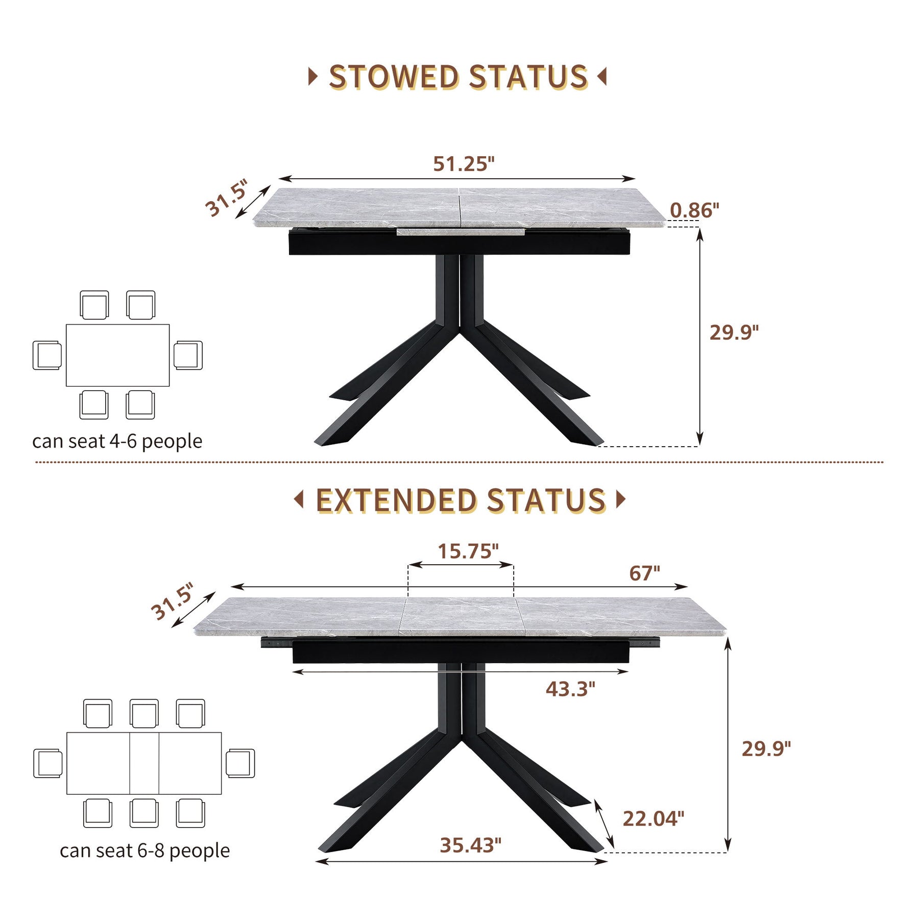 - [Extendable Tabletop Design] Equipped with a smart automatic pop-up extension, this extendable dining table allows smooth and effortless expansion. Easily switch between compact and spacious modes to accommodate family gatherings or work meetings.